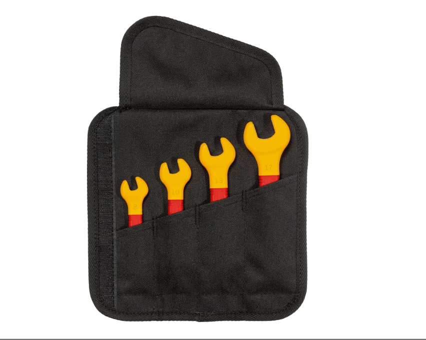 博世VDE扳手組包含4把板手:8mm、10mm、13mm、17mm。套裝配有一個實用的帆布包。根據 DIN EN/IEC 60900,經過高達 10,000 伏特的測試,並通過高達 1,000 伏特的 VDE 認證堅固的鉻釩鋼,可靠耐用由於鉗口位置為 15°,因此適合狹窄空間(香港行貨)