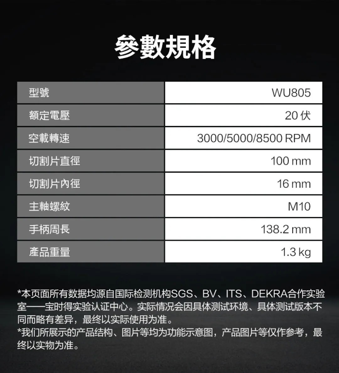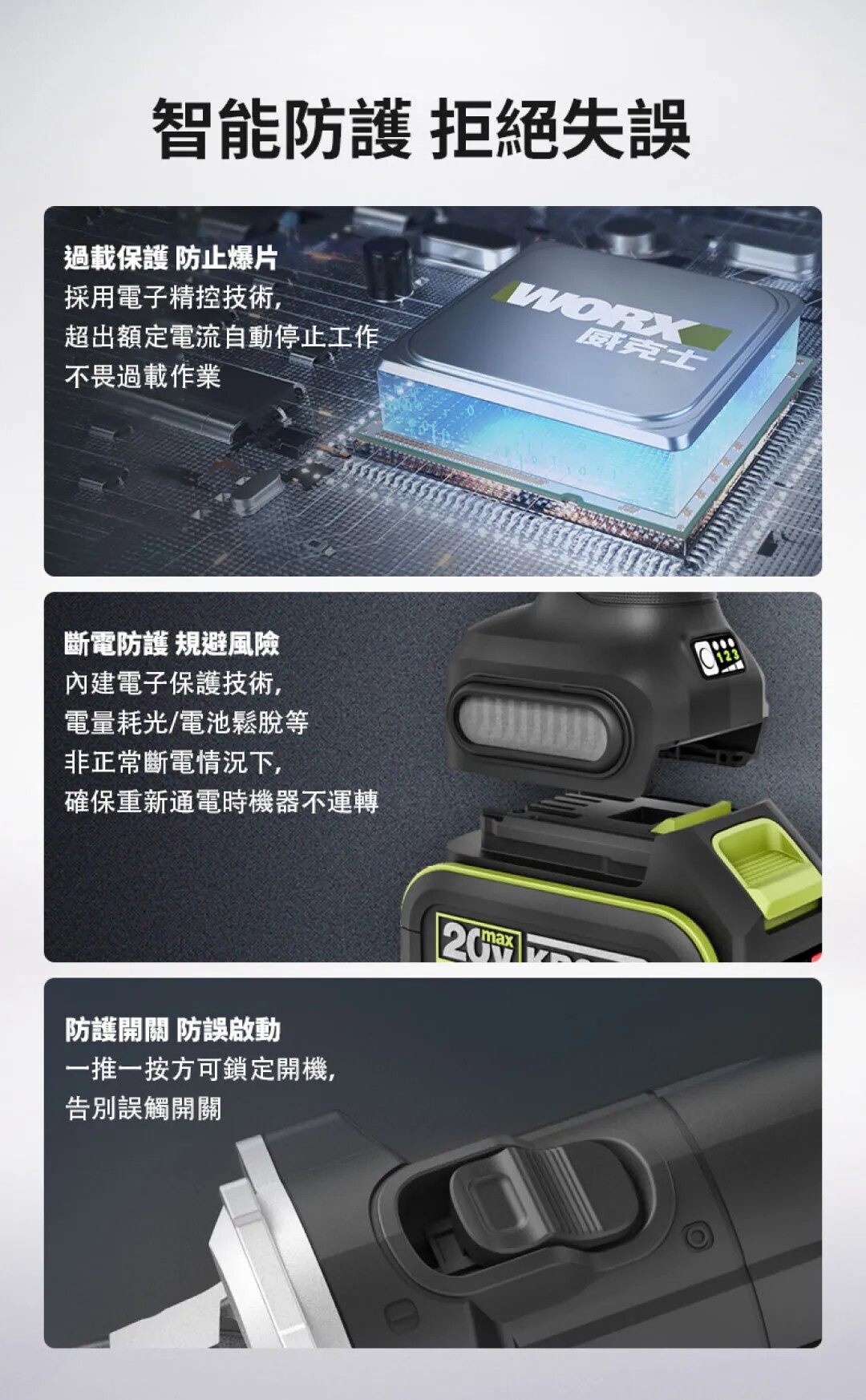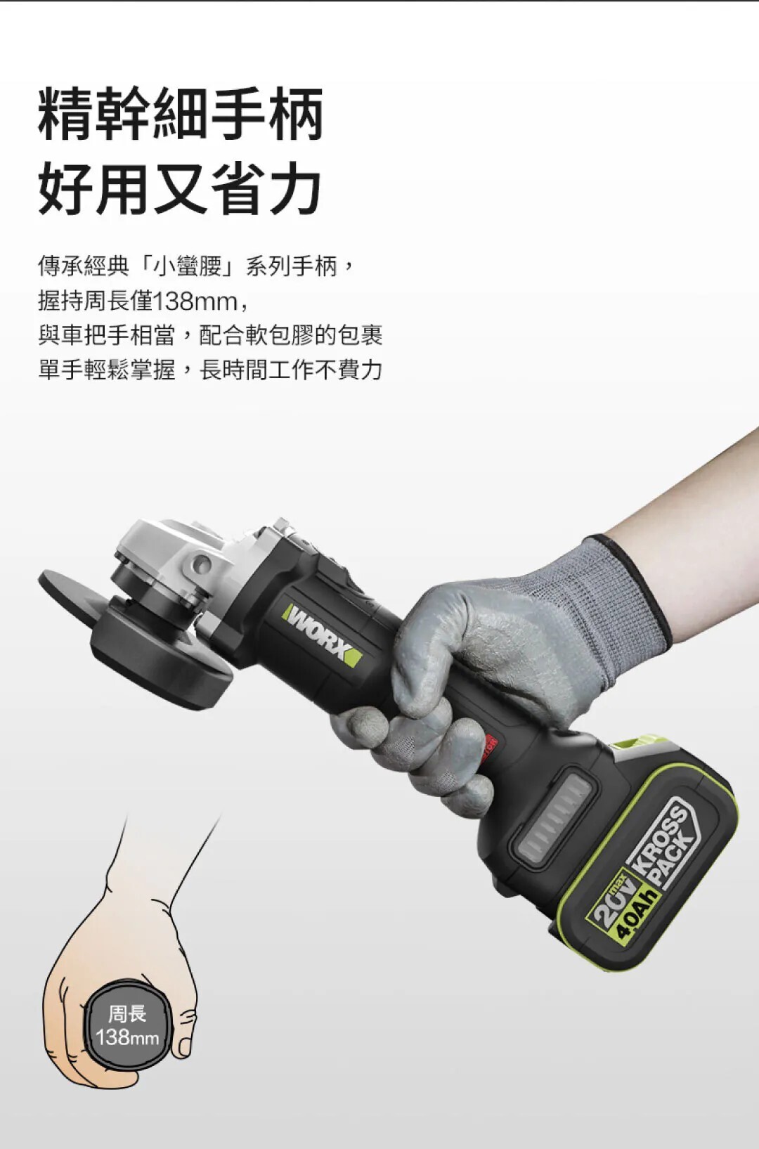WORX 威克士 20V 4”無刷調速角磨機 淨機 WU805.9 x 1